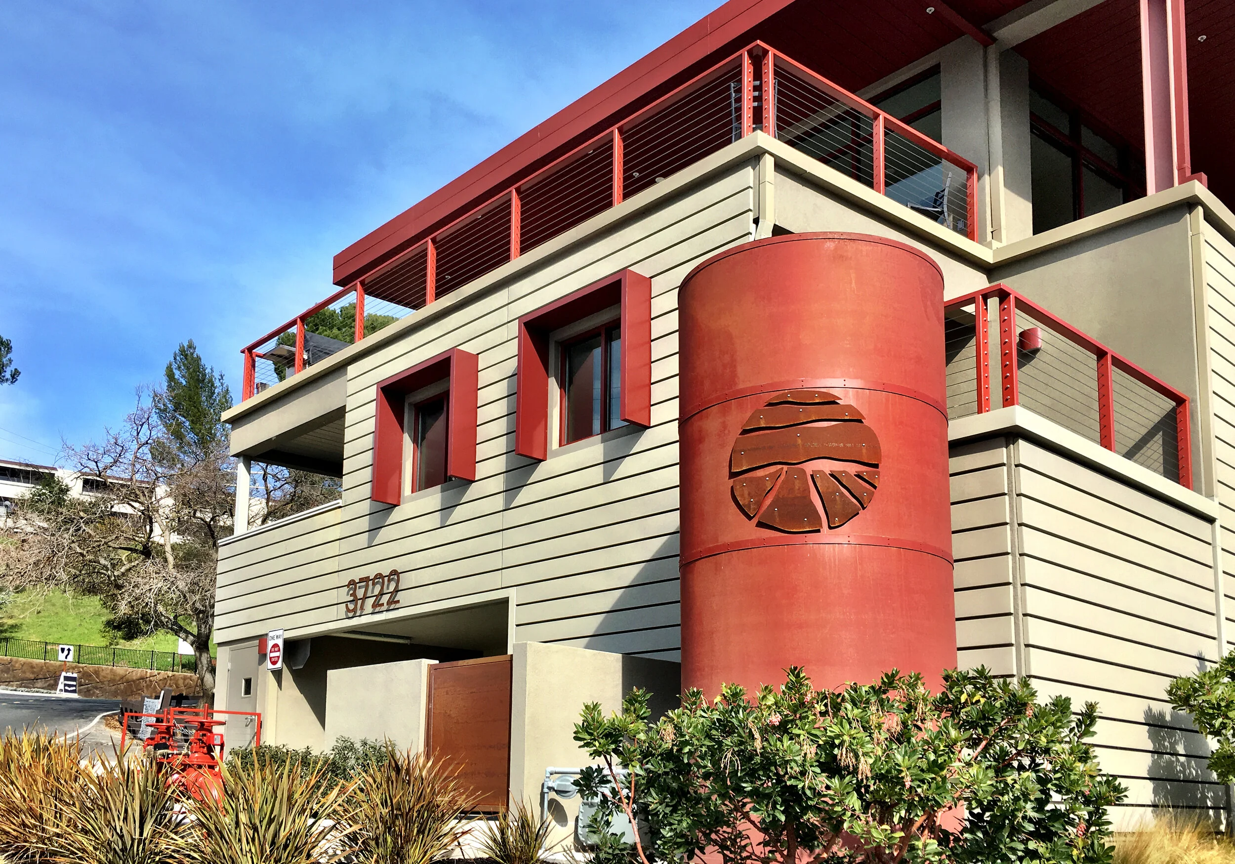 Rain-screen water harvesting system and drought-tolerant plants mean no potable water use for landscaping